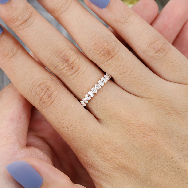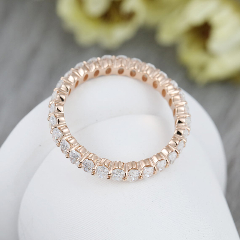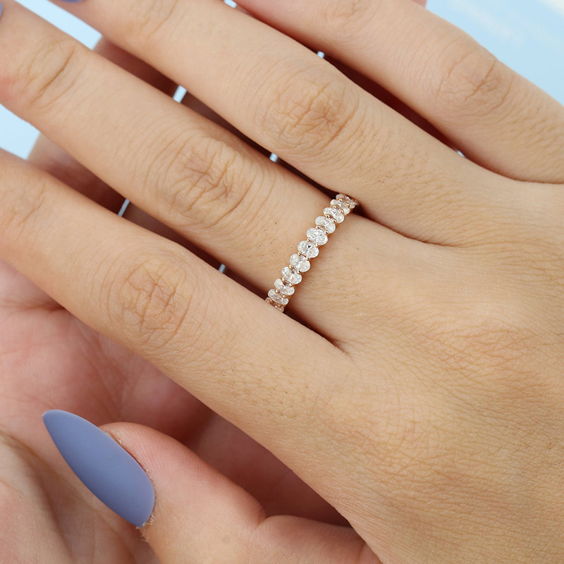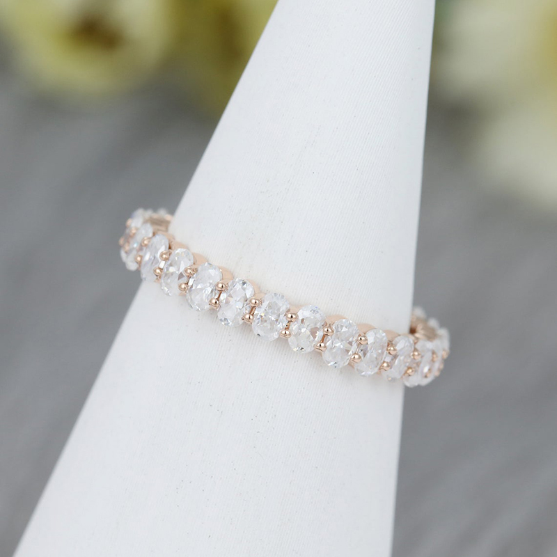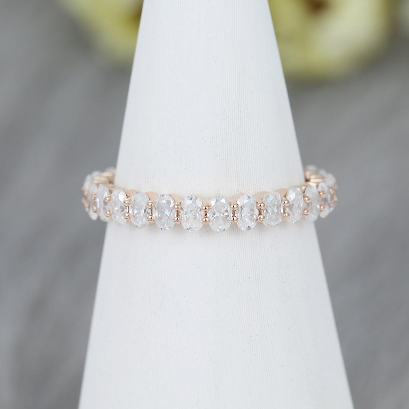 CxsJeremy Solid 14K Rose Gold Oval Cut Moissanite Engagement Ring Vintage Full Eternity Stacking Bridal Promise Anniversary Gift for Her