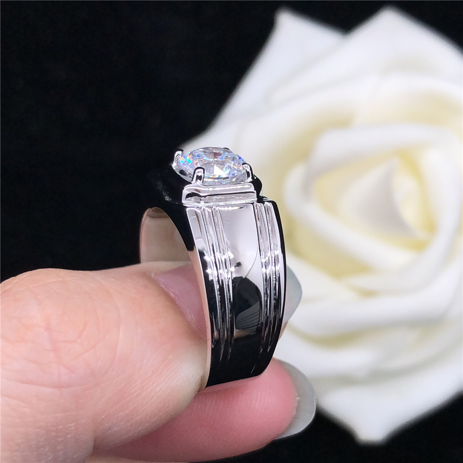 14k White Gold Ring Man 0.5CT Moissanite Engagement Ring For Men Pass Test With Certificate D Color Beautiful Gift For Husband