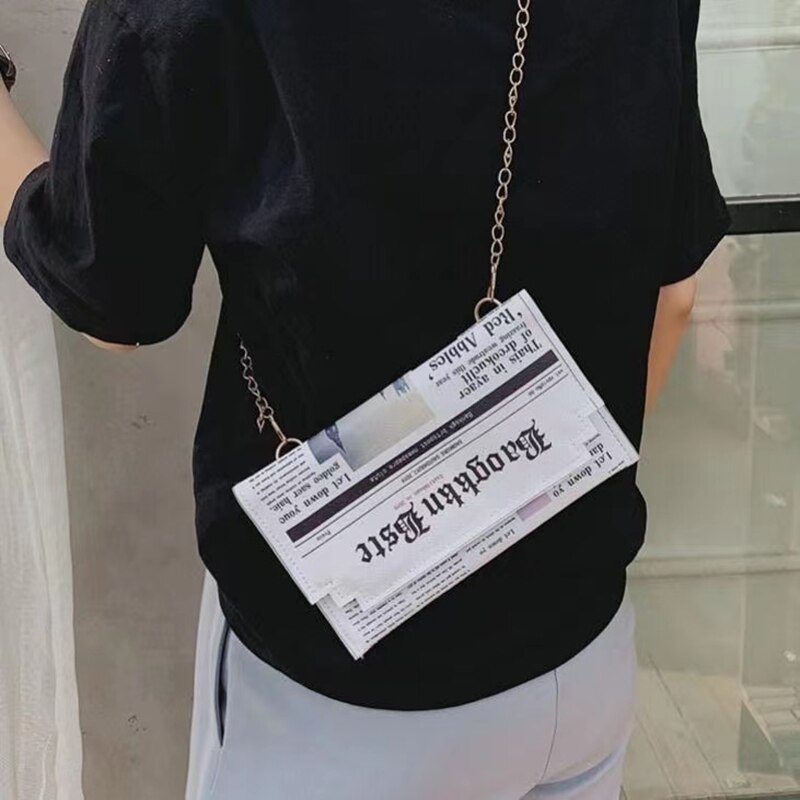 Women Joker Messenger Bag Chain Shoulder Bag Personality Fashion Small Square Newspaper News Styling Bags Wholesale Bolso Mujer