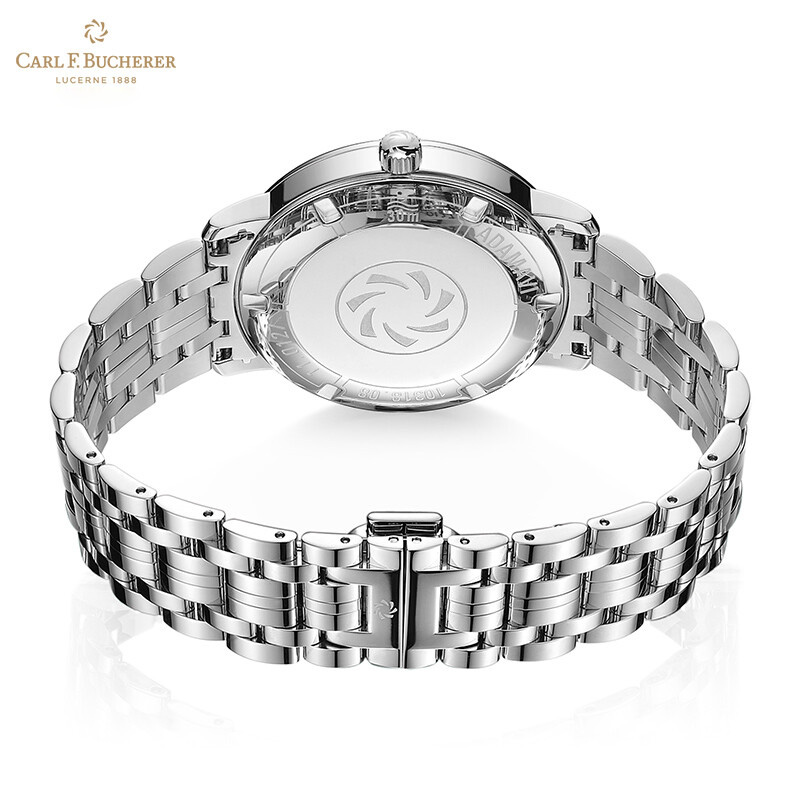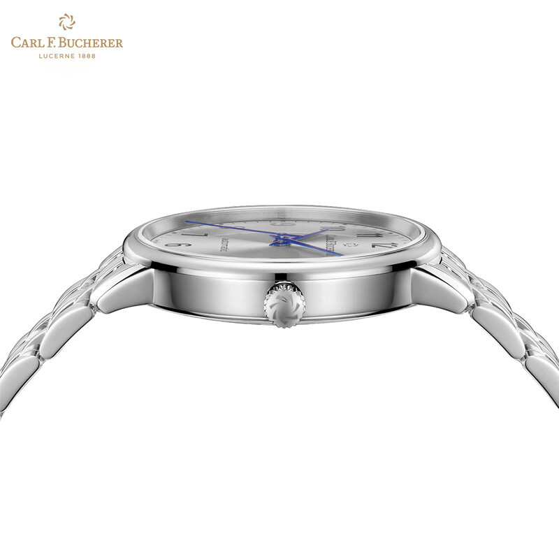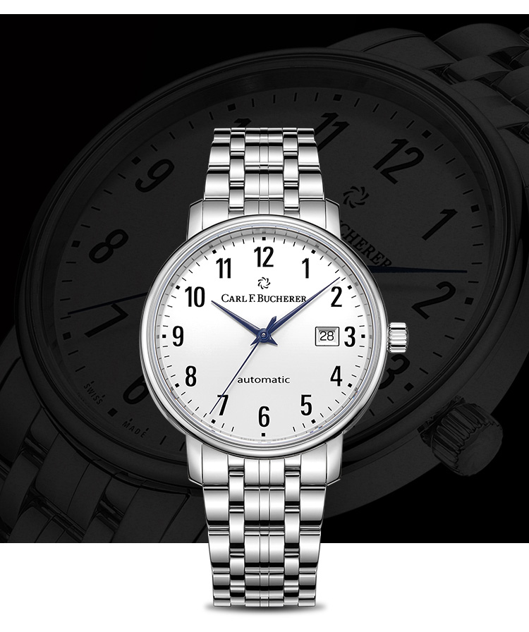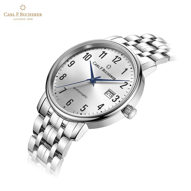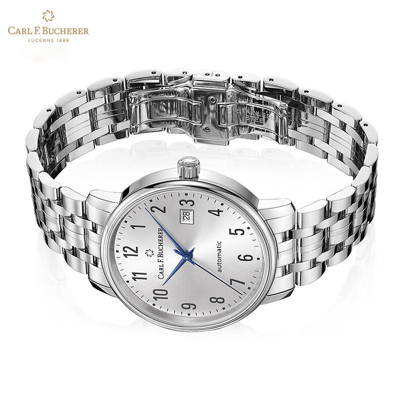 Product Name: Bucherer Swiss Watch Admiral Series Classic Blue Needle White Background Mechanical Men's Watch Silver 00.10318.08.62.21
