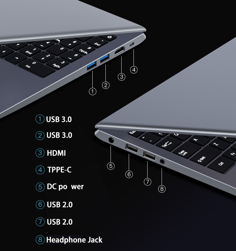 usb 3.0*2/HDMI*1/Type-c*1/DC Po Wer/USB2.0*2/Headphone Jack