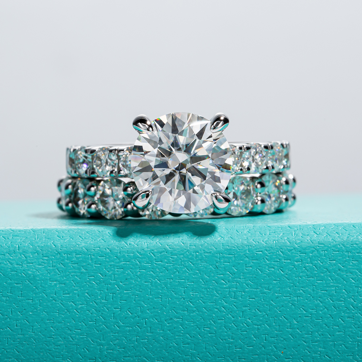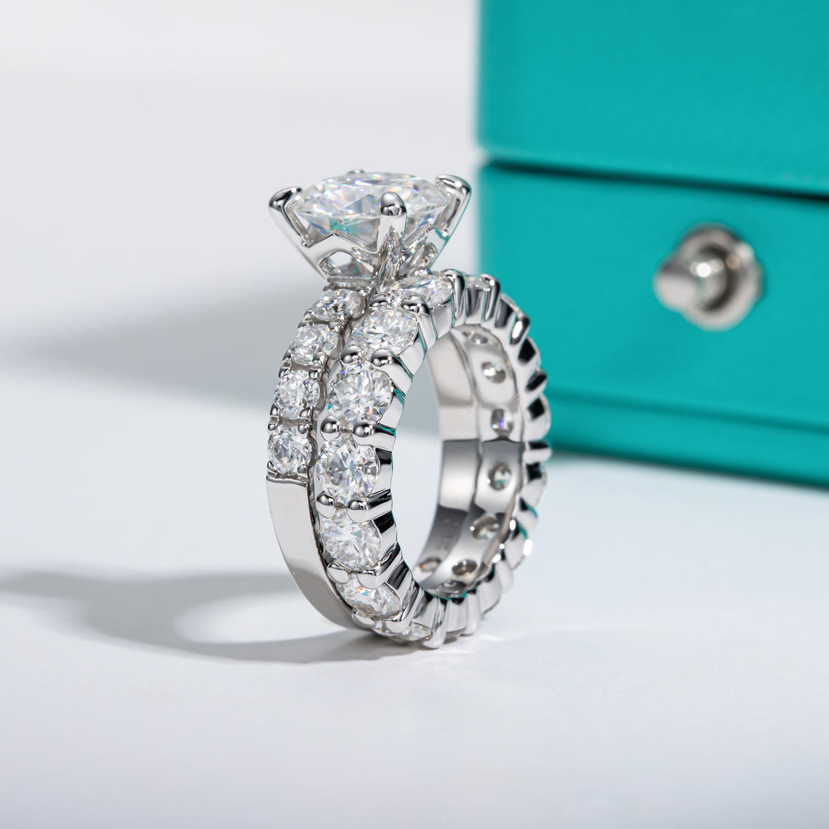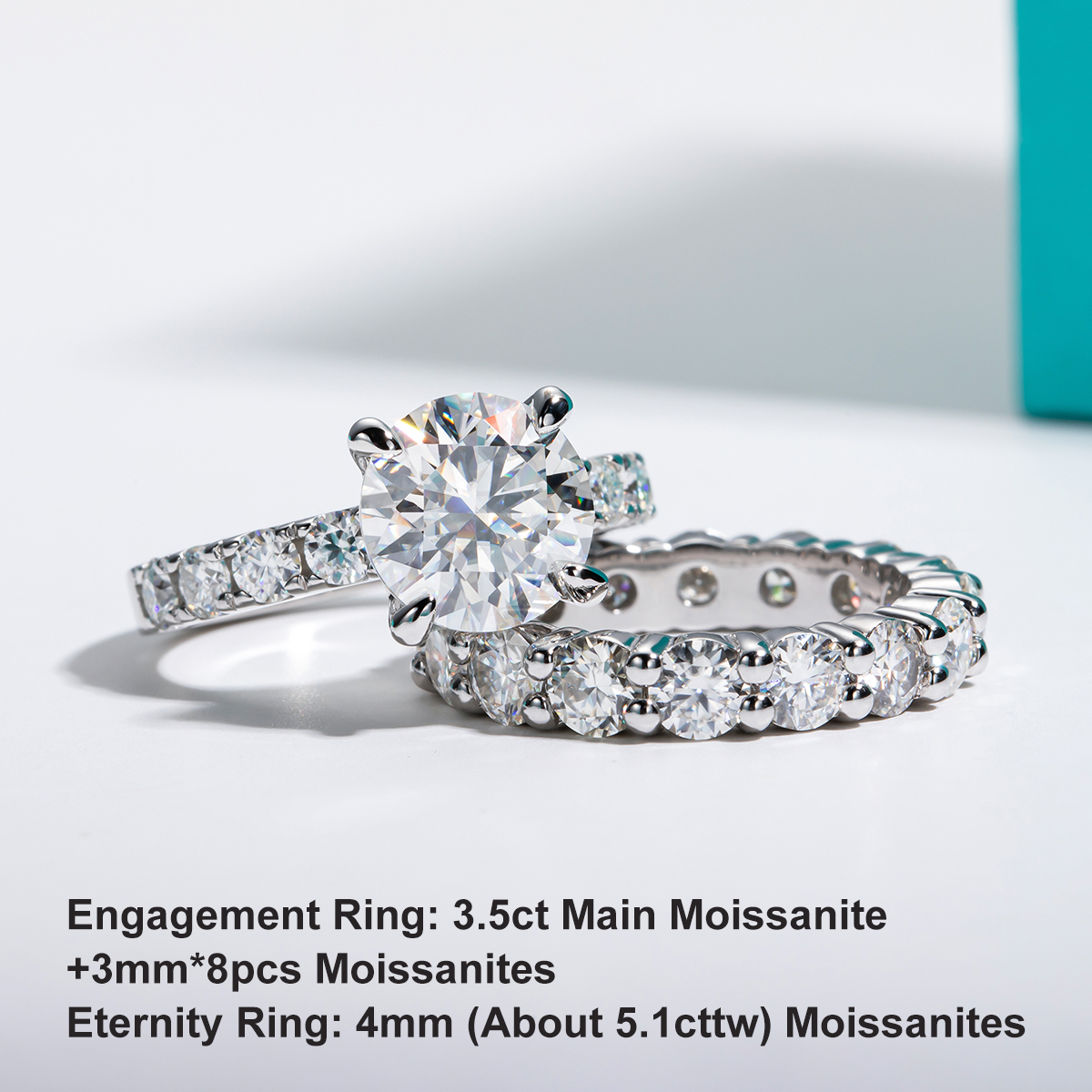 AnuJewel 3.5ct Main Stone D Color Moissanite Diamond Engagement Eternity Band 925 Sterling Silver Rings Set For Women