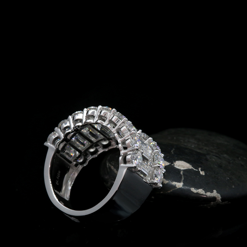 Luxury Solid 18K Gold Moissanite Diamond Wedding Band Round Cut Baguette Cut Diamonds Half Eternity Anniversary Ring