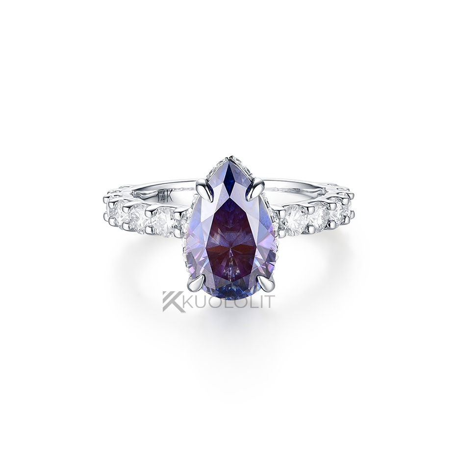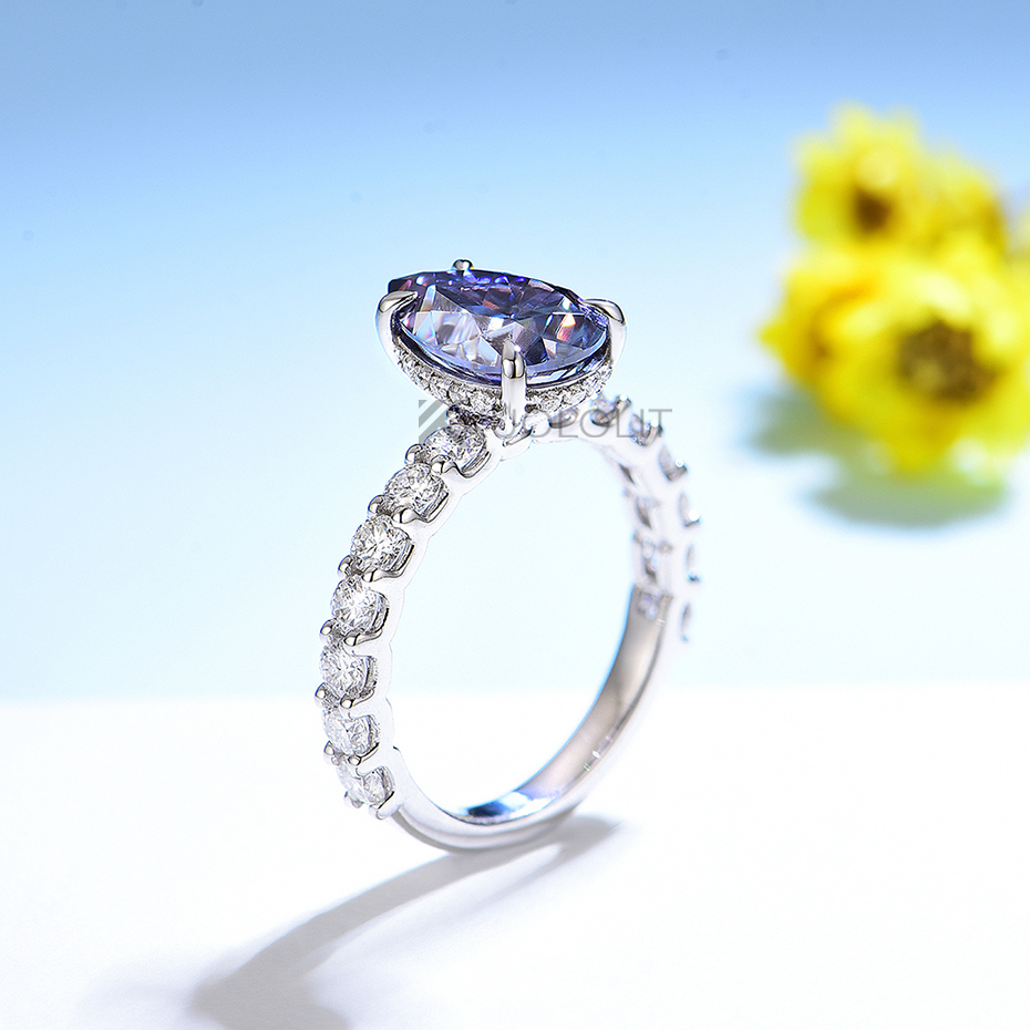 Kuololit 3CT Blue Moissanite Ring for Women Solid 18K White Gold Origanal Blue Color Pear Cut E W Ring for Engagement Christmas