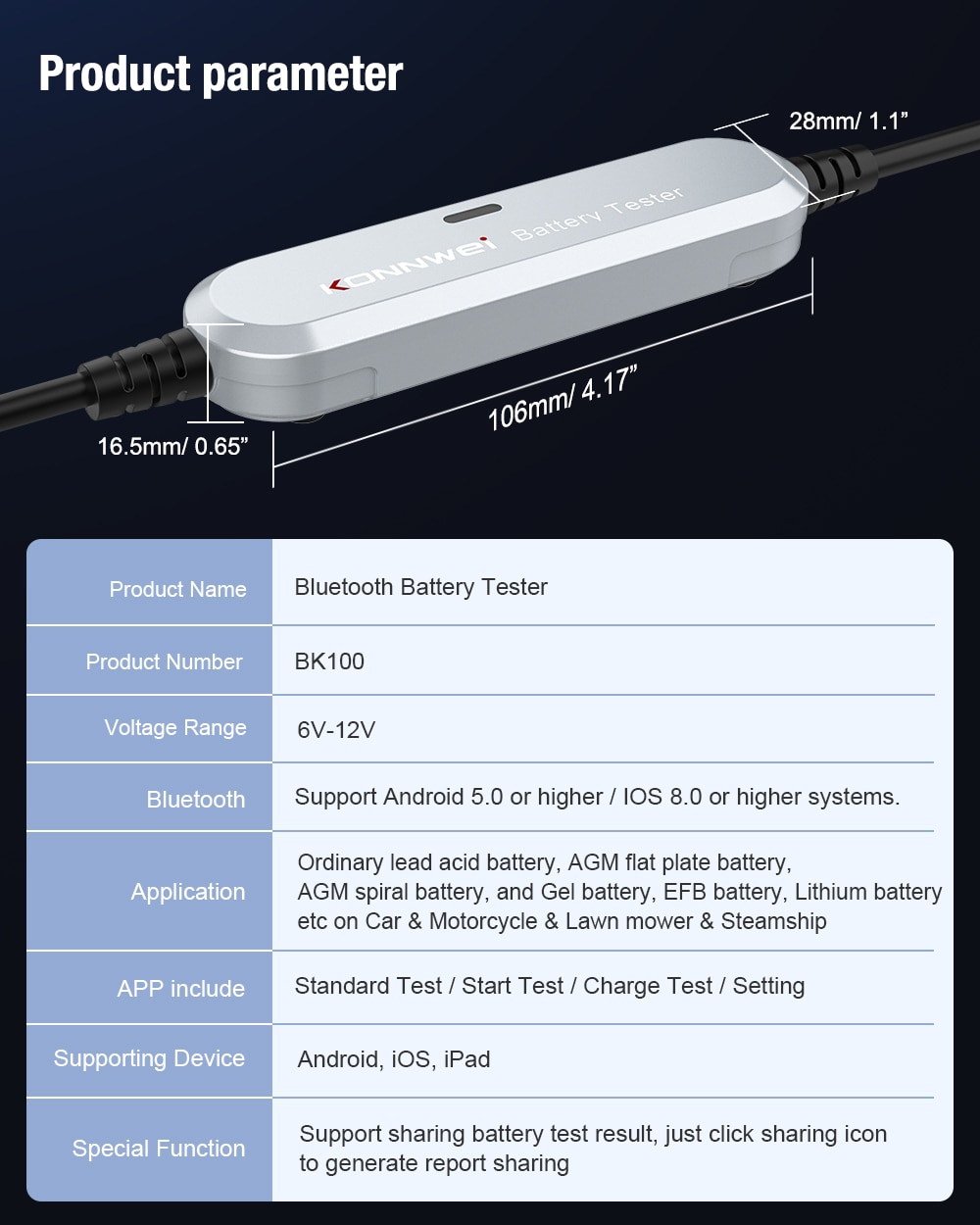 KONNWEI BK200 Bluetooth 5.0 Car Motorcycle Truck Battery Tester 6V 12V 24V Battery Analyzer 2000 CCA Charging Cranking Test Tool
