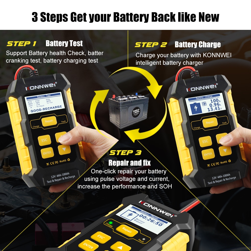 KONNWEI KW510 12V Car Battery Tester Car Repair Tool Pulse Repair Start Test Battery Charger/KW208/KW206/KW650/KW450
