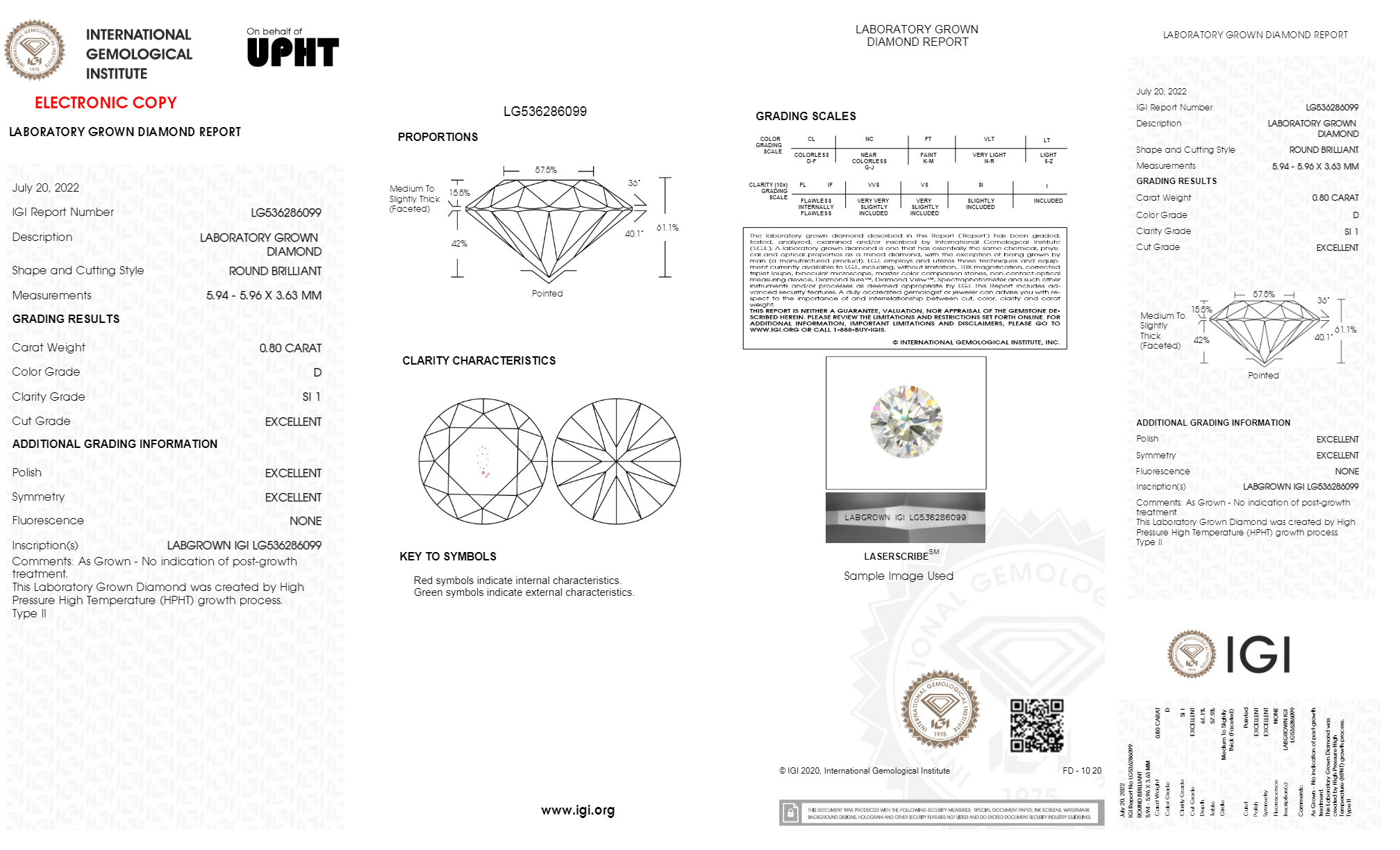 Round Lab Grown Diamond Loose HPHT With IGI certificate