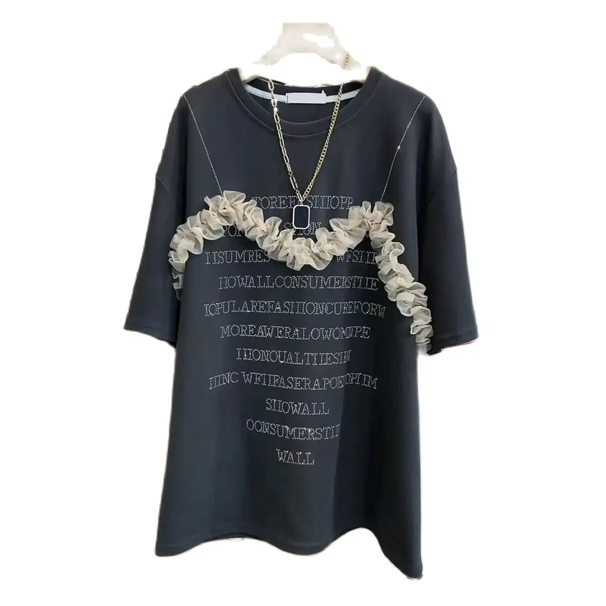 4XL Plus Size Women Clothing Cotton T Shirt Summer Big Size T-shirt with Rhinestone Letter Mesh for Women 150 Kg Loose Tops