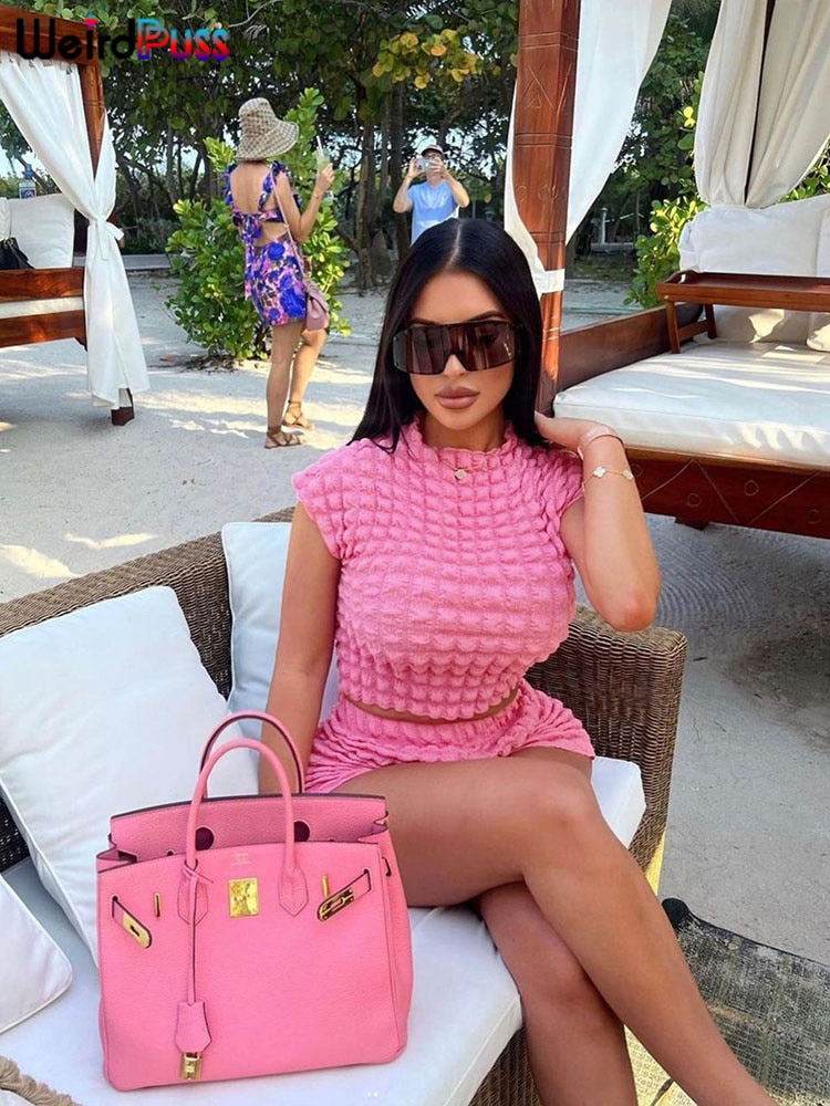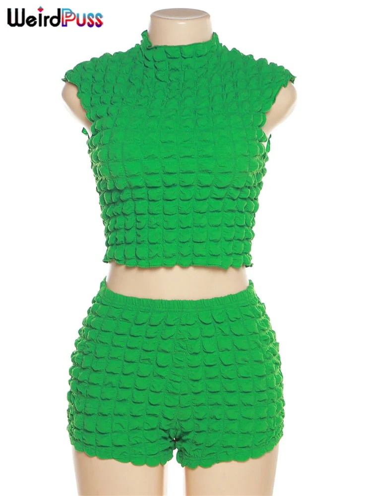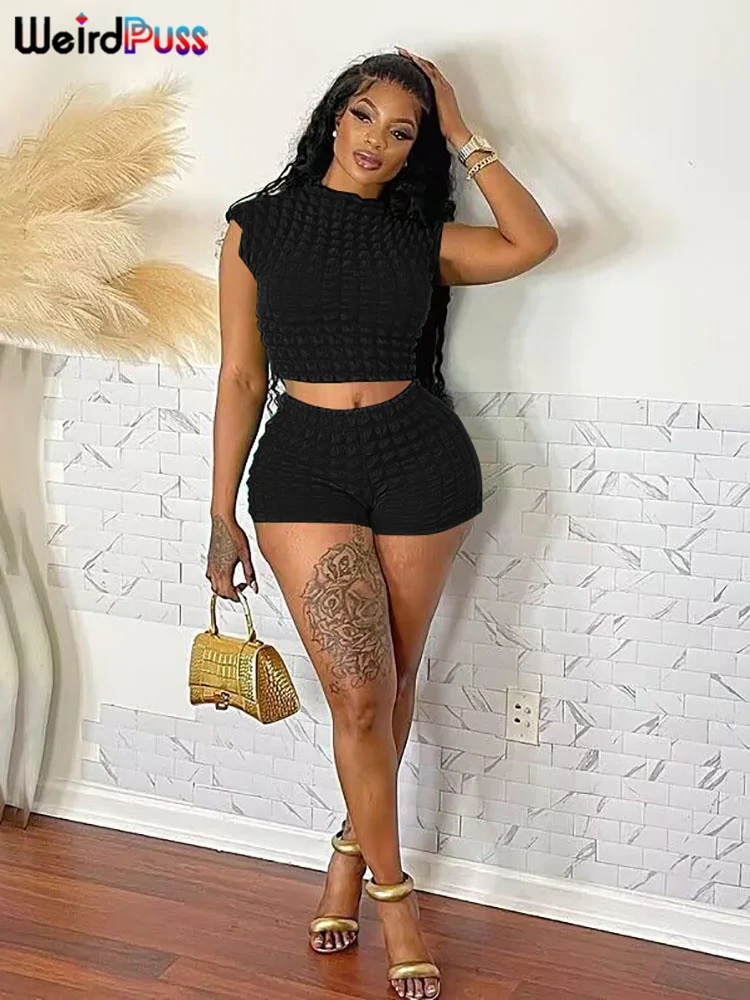 Weird Puss Waffle 2 Piece Set Women Tracksuit Sporty Solid Summer Trend Tank Tops+Short Casual Streetwear Slim Matching Outfits