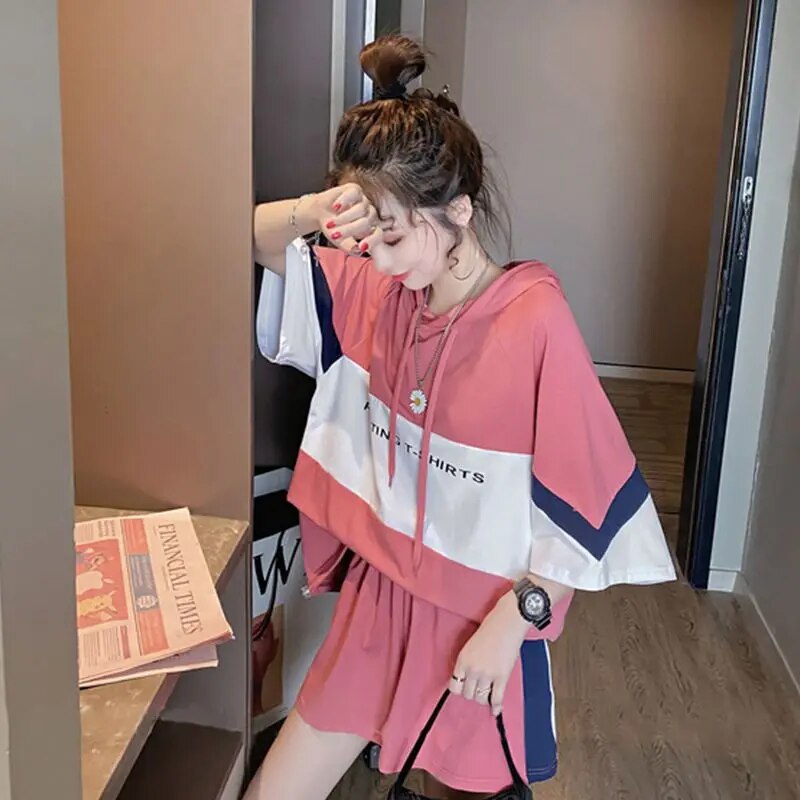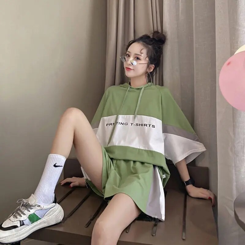 2024 New Solid Color Pullovers Ladies Casual Two-piece Suit Summer Loose Short Sleeve Short Sets Young Style Women's Clothing
