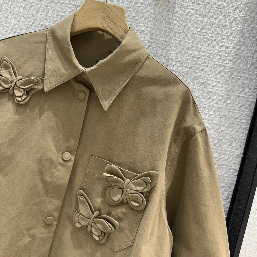2024 New arrival 100% cotton butterfly designer shirt brand blouse clothing for women
